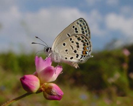 砂利道を歩くとクロツが飛んで小石の上に止まる。