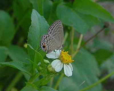 ウラナミシジミシリーズとして、ルリウラを。 オスはブルーのメタリックな光沢をもつが、とまった時はまず表を見せない。 夕刻テリをはって追いかけっこをしている時はこのブルーがきらきらと、とてもきれい。 夏の終わりから秋にかけて、タイワンクズのマント群落があると本種がいる可能性が高い。 花をちぎって持って帰ると幼虫がついていると思う。 さやえんどうで飼育可能なのでらくちんです。 |