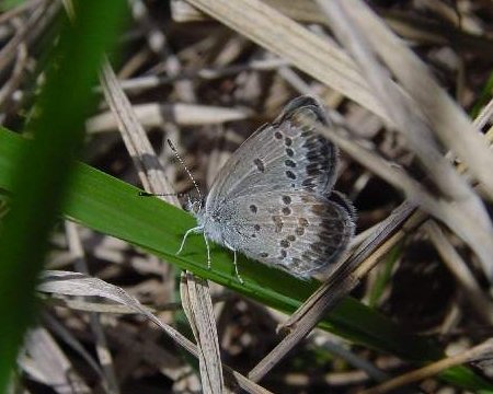ヤマトシジミに似ているが黒のスポットの配列が違う。