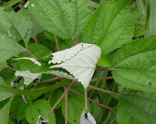 久部良岳(与那国)の山頂のカラムシにアカタテハの巣があった。