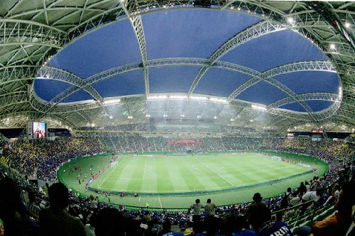 試合会場の大分スタジアムは開閉式のドームできれいでした。